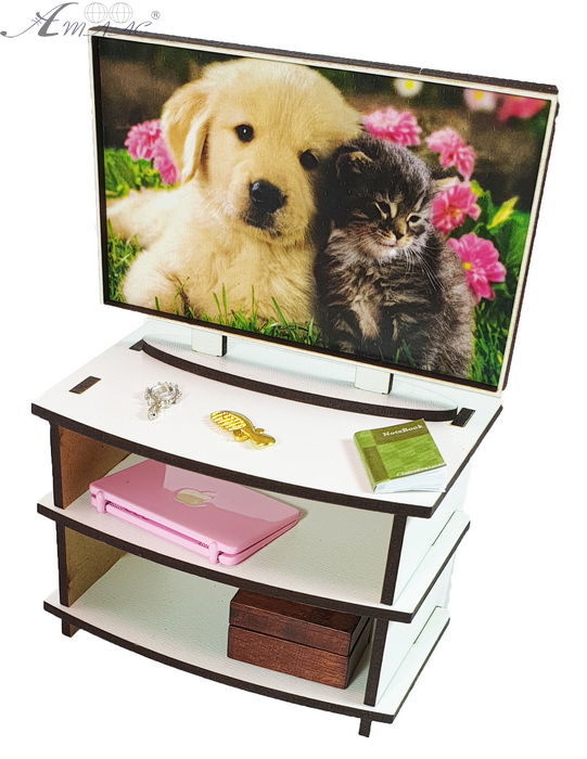 Меблі для ляльок ростом 30 см - Тумба з телевізором 10*6*14см AS-6036