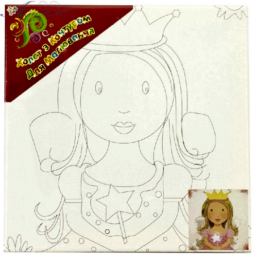 Холст с контуром Принцесса на подрамнике 25 х 25 см  951005