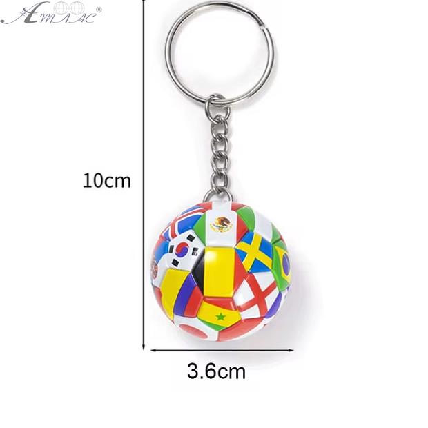 Брелок Мяч футбольный с картинками разных флагов, примерно 4 см диаметром. Мяч твердый. Фактическое изображение товара может отличаться от изображенного на фото.