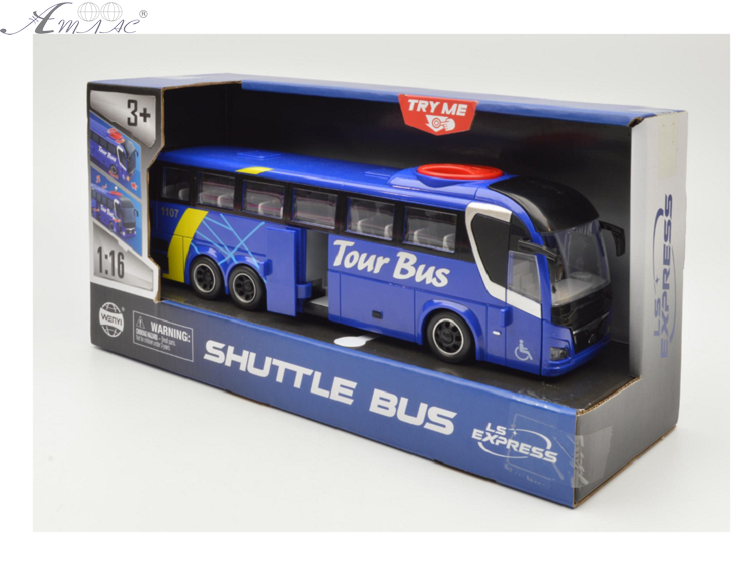 Игрушка Автобус Tour Bus Синий двери открываются+свет+звук 28 см WY1107A