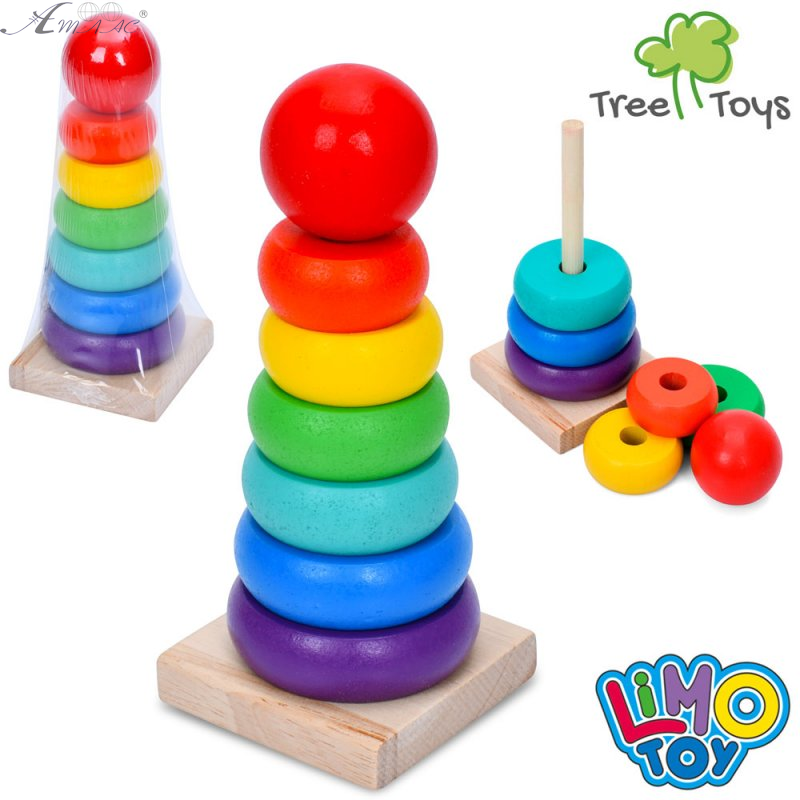 Игрушка Деревянная Пирамидка Радуга 7 элементов MD0819