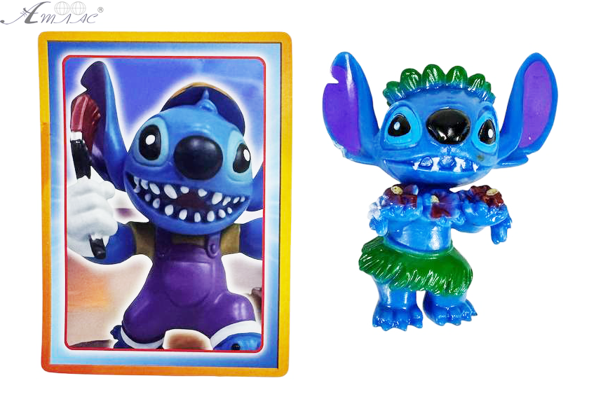 Фигурка с карточкой создана по мотивам популярного мультфильма "Лило и Стич". Игрушка-фигурка Стич папуас. Размер фигурки от 5 до 6 см. Фактический оттенок изделия может отличаться от представленного на фотографии из-за особенностей цветопередачи экрана.
