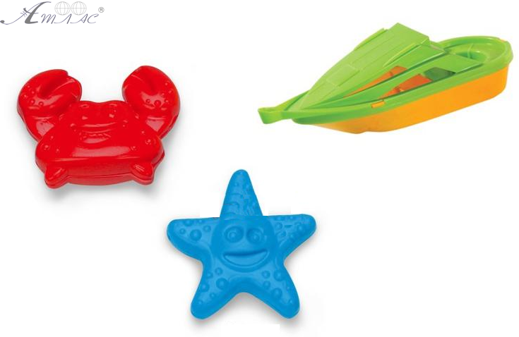 Превратите каждое купание в захватывающее водное приключение! Это универсальное решение для весёлых игр в ванной, бассейне, на пляже или в песочнице. Яркие цвета привлекут внимание малыша, а функциональность игрушек поможет развить мелкую моторику и воображение. В набор входит пластиковый катер, а также формочки в виде краба и морской звезды, в сетке. Фактический оттенок изделия может отличаться от представленного на фотографии из-за особенностей цветопередачи экрана.
