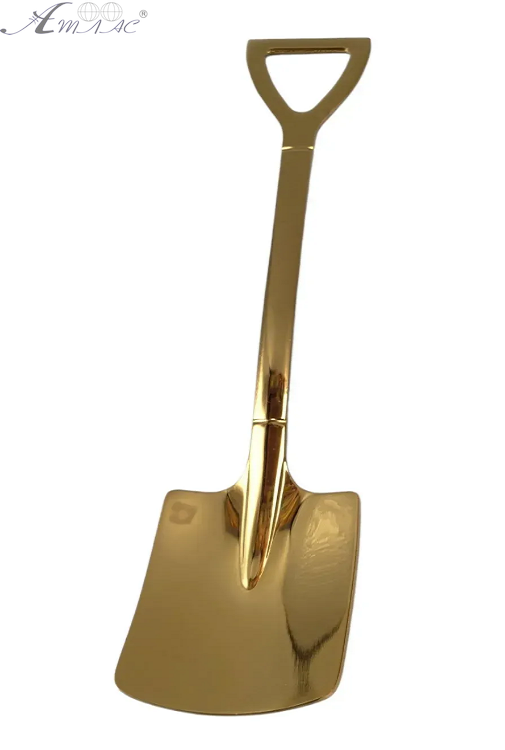 Декоративная чайная ложка в форме лопаты совок из нержавеющей стали. Цвет: золотистая. Длина: 15,5 см. Фактический оттенок изделия может отличаться от представленного на фотографии из-за особенностей цветопередачи экрана.