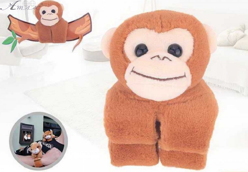 Мягкая игрушка Обезьянка в виде браслета на руку. Крепится по принципу светоотражающих браслетов вшитых в лапки изделия. Процесс крепления и снятия быстрый и удобный. Размеры изделия 21х9х8 см. Мягкий, приятный на ощупь материал. Фактический оттенок товара может отличаться от изображенного на фото.