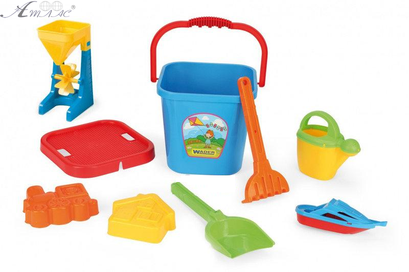 Набор игрушек для песочницы. В набор входят 9 предметов: большое ведро, сито, лопатка, грабли, 2 формочки, катер, лейку и водяную/песочную мельницу. Набор идеально подходит для игр на пляже, в саду, дома. Возраст 2+ . Фактический оттенок изделия может отличаться от представленного на фотографии из-за особенностей цветопередачи экрана.