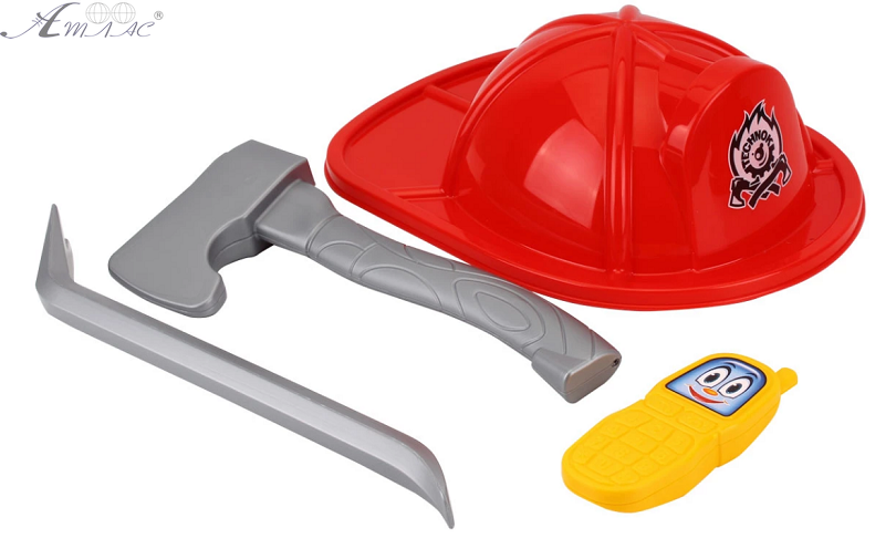 В наборе пластиковые - Каска пожарного со смягченной вставкой, Топор пригодятся при разборке завалов, Ломик и Телефон-рация. Размер каски : 30 х 22 х 10 см, топор : 27 см. Фактический оттенок товара может отличаться от изображенного на фото.