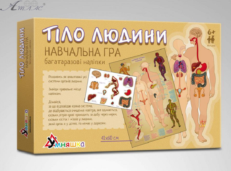 Рассмотри как устроены все системы органов человека. Найди правильное место наклейкам-органам. Узнай, за что отвечает каждая система, где происходит очищение воздуха и т.д. Состав: игровое поле 41х60см, многоразовые наклейки. Для детей от 6 лет. Фактический вид товара может отличаться от изображенного на фото.