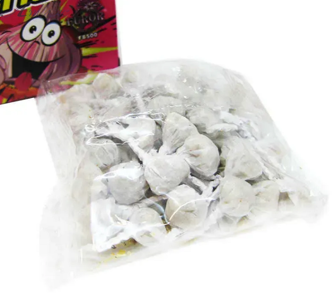 Игрушка Стреляющий чеснок 50 шт. Это и правда очень похожие на маленькие головки чеснока мини-петарды размером с канцелярскую кнопку. Их не надо поджигать, просто киньте изделие в стену или на землю и оно щелкнет с резким хлопком. Мощность петард слабая, по звуку типа пистонов. Фактический оттенок товара может отличаться от изображенного на фото.