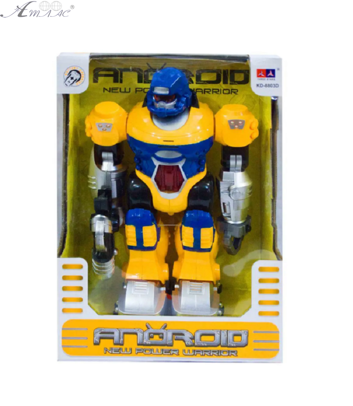 Робот "ANDROID". Ходит вперед, двигает руками вверх и вниз, головой влево и вправо. Светится, имеет звуковые эффекты. Размер робота: 15 x 7 x 23 см. Фактический оттенок товара может отличаться от изображенного на фото.