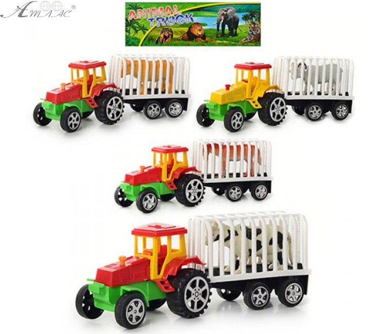 Трактор с прицепом инерционный A 900. Трактор с прицепом и животными. Размер: 20 х 5,5 х 7 см Фактический цвет товара может отличаться от изображенного на фото