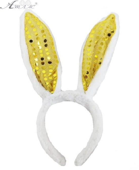 Игрушки Обруч Ушки Зайки меховые с пайетками 26см желтые 14046