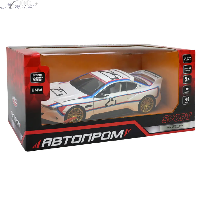 Модель Автопром BMW 3.0 CSL Hommage металл 1:24 инерционная 20см 68257A