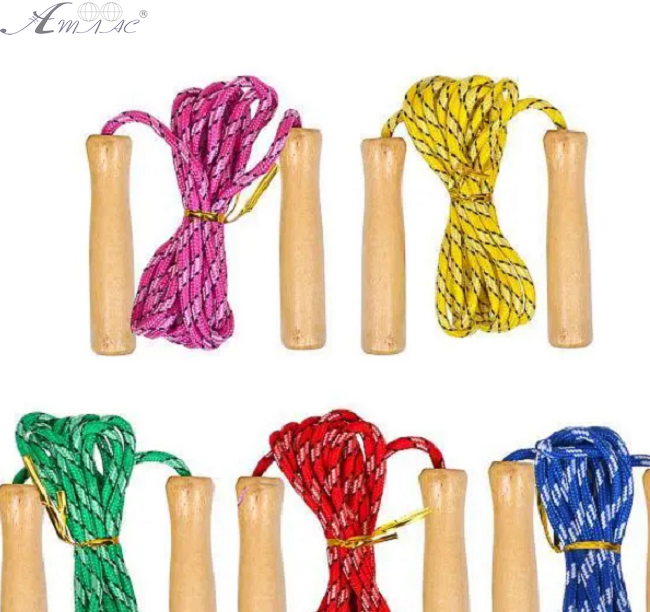 Скакалка веревочная с деревянными рукчами длинна 2,40м 09950