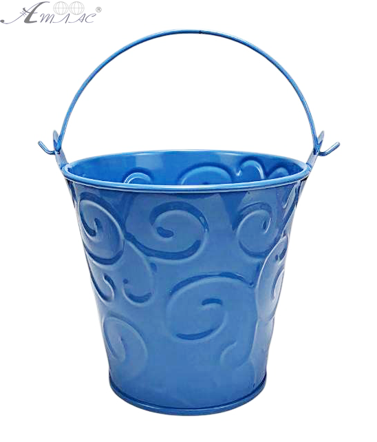 Ведерко Декоративное металл 9,5 х 9,5см Диз № 1 завитки Синее 06413