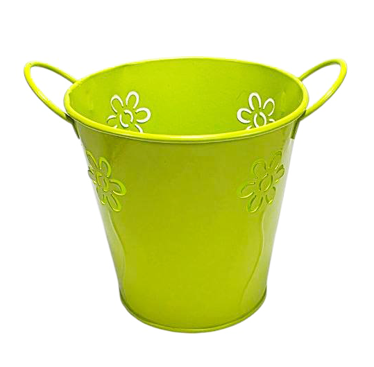 Ведерко Кашпо Декоративное металл  11 х 11см с двумя ручками и цветами Салатовое  15729