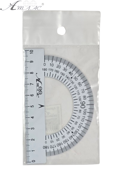 Транспортир металлический БЕЛЫЙ 0,4мм твердый 10 см AS-0673