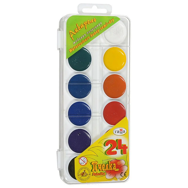 Акварель набор Гамма Пчелка медовая полусухая 24 цвета 212035