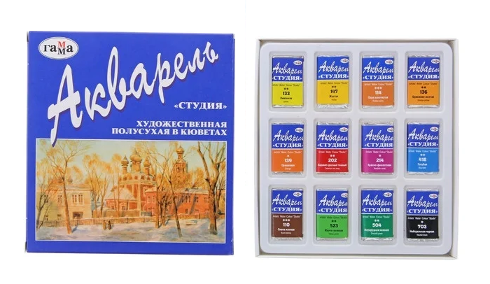 Акварель набор Гамма Студия художественные полусухие в кювет 12 цветов 215002