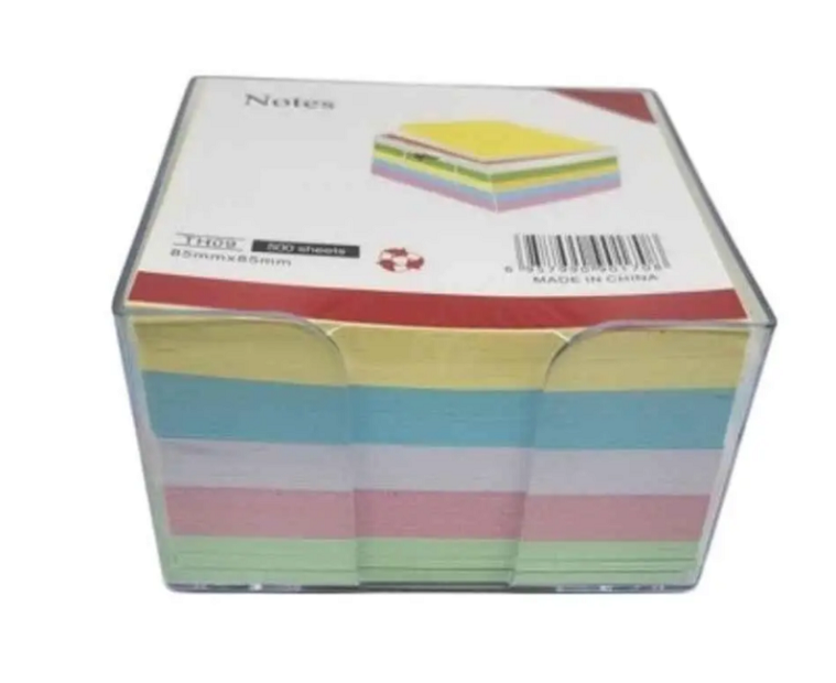Бумага для заметок не склеенная в пластиковом, прозрачном боксе 85 х 85 х 50 мм.500 листов, 5 цветов бумаги. Фактический оттенок изделия может отличаться от представленного на фотографии из-за особенностей цветопередачи экрана.