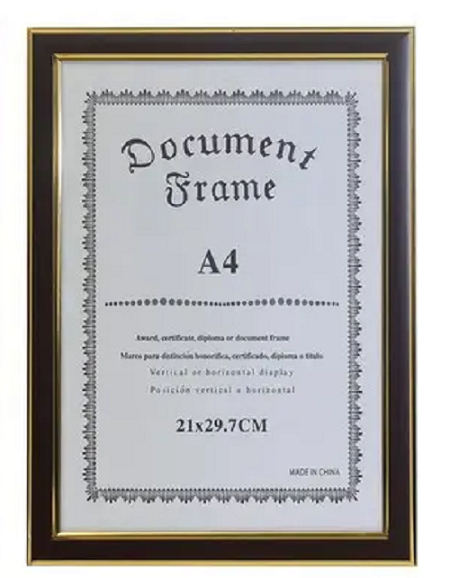 Фоторамка 21 х 29,7 см Темно-Коричневая под дерево с золотым кантом 572697
