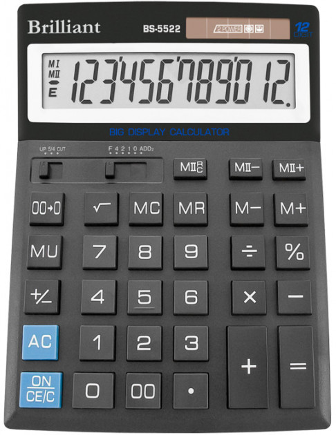 Калькулятор Brilliant BS-5522 настольный 12 разрядный, 2 питания, размер - 151 х 204 х 38 мм. Фактический оттенок товара может отличаться от изображенного на фото.