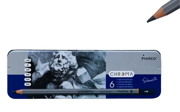Карандаши графитовые набор Marсо 6шт Н-8В Chroma в металлическом пенале 8015-6TN