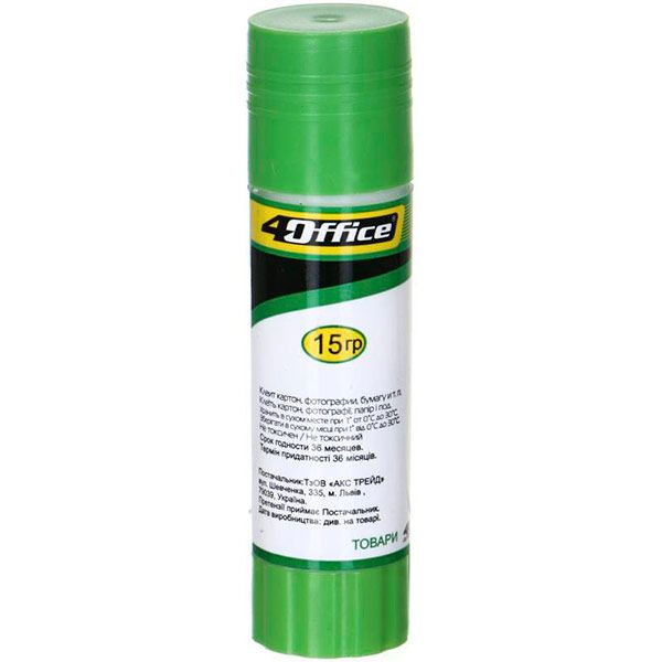 Клей-карандаш PVA 15гр. 4OFFICE 4-338. Фактический оттенок товара может отличаться от изображенного на фото.