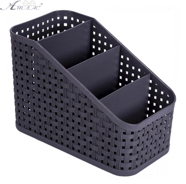Органайзер настольный пластиковый. Имеет 4 отделения. Размер 10 х 17,5 х 12см. Фактический цвет товара может отличаться от изображенного на фото.