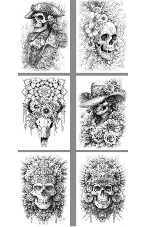 Оригинальная Интегральная раскраска для детей Skull. Формат А4, 8 листов. Наслаждайтесь раскрашиванием. Фактический оттенок товара может отличаться от изображенного на фото.
