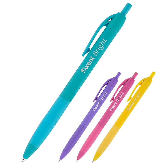 Шариковая ручка хорошего качества Axent Bright. Пластиковый, прозрачный, круглый корпус с резиновым грипом под пальцы. Диаметр корпуса около 9мм. Фактический оттенок товара может отличаться от изображенного на фото.