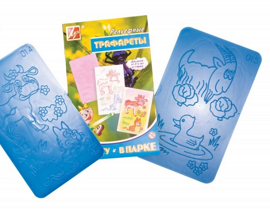 Рельефный трафарет "На Лугу и В Парке" предназначен для детского творчества. Трафарет не имеет традиционных прорезей - рисунок выступает над плоской поверхностью. Чтобы получить рисунок на бумаге, трафарет кладется под лист, а сверху бумага штрихуется с помощью восковых карандашей. Размер трафарета : 16,5*10 см. 2 штуки Фактический цвет товара может отличаться от изображенного на фото.