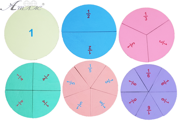 Дроби учебные от 1 до 6 частей = 10 см ЦВЕТНЫЕ с Цифрами на мангнитах AS-7161