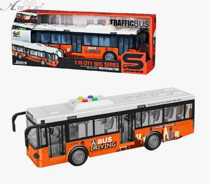 Іграшка Автобус Помаранчевий двері відчиняються + світло + звук 26 см JS120A