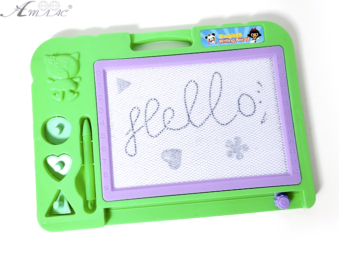 Дошка для малювання магнітним олівцем, який входить в комплект. Швидко стирає намальоване проведенням спеціального повзунка.Також у комплекті йдуть штампики. Відмінно розвиває моторику та почуття прекрасного. Пластикова дошка в пакеті. Розмір: 30 х 21 см. Фактичний відтінок виробу може відрізнятися від представленого на фотографії через особливості кольоропередачі екрану.