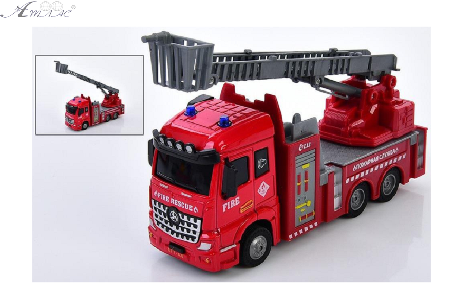 Пожежна машина XG877-A61В, металева, інерційна, 1:43, зі звуковими та світловими ефектами, рухомі деталі, гумові колеса, на батарейках (таблетках). Розмір упаковки: 23 х 12 х 8,5 см. Фактичний відтінок виробу може відрізнятися від представленого на фотографії через особливості кольоропередачі екрану.