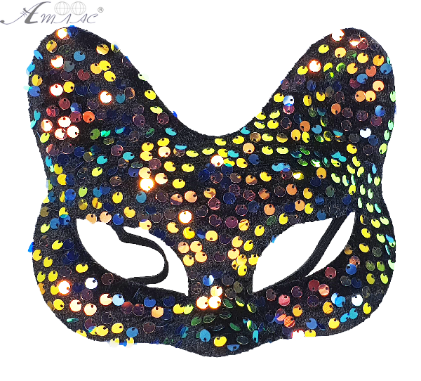 Маска Кота чорна з паєтками, пластикова на резинці. Маски для квадробіки, Хелоуїна та інших свят в асортименті можна купити на нашому сайті. Розмір 150 х 170мм. Фактичний відтінок товару може відрізнятись від зображеного на фото.