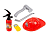 У наборі пластикові - Каска пожежного зі пом'якшеною вставкою, Сокира нагоді при розбиранні завалів, Ломік, Вогнегасник і Телефон-рація. Розмір каски: 30 х 22 х 10 см, сокира: 27 см. Фактичний відтінок товару може відрізнятись від зображеного на фото.