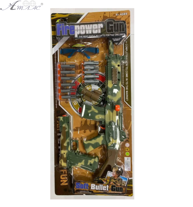 Військовий набір пластиковий, пістолет, автомат, окуляри, кулі-присоски. Розмір упаковки: 62*27*4см. Фактичний відтінок товару може відрізнятись від зображеного на фото.