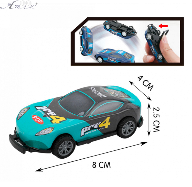 Дитяча інерційна машинка підстрибує та обертається на 360° при зіткненні. Для початку потрібно перевернути машинку та відтягнути пружинку. Для запуску достатньо поставивши колесами на підлогу, трохи протягнути назад, після чого відпустити і поїде машина вперед. Зустрівшись із перепоною, спрацює механізм і авто підскочить нагору. Розмір машинки: 8 х 4 х 2,5 см. Фактичний відтінок товару може відрізнятись від зображеного на фото.
