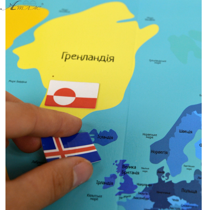 Карта світу у вигляді постера з багаторазовими наклейками (прапори та національні страви). Вивчайте з дітьми прапори з різних країн. Склад: ігрове поле 41х60см, багаторазові наклейки – 100шт. Розмір коробки: 30,5х4х21см. Для дітей віком від 5 років. Фактичний відтінок товару може відрізнятись від зображеного на фото.