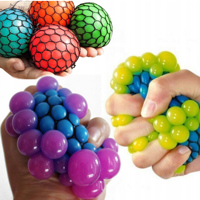 Кулька у сітці антистрес, призначений для зняття напруги. Діаметр приблизно 6 см. При стисканні м'ячика внутрішній гель видавлюється через осередки сітки, утворюючи бульбашки, викликаючи приємні тактильні відчуття. Фактичний відтінок виробу може відрізнятися від представленого на фотографії через особливості кольоропередачі екрану.