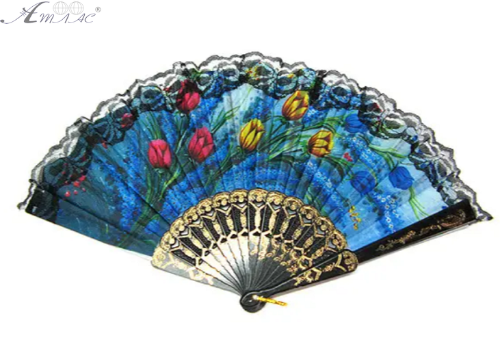 Віяло з тканини з пластиковою основою складається з пластикових пластин, скріплених у головці віяла спеціальним заклепуванням. Довжина Віяла 23 см у складеному стані. Фактичний відтінок виробу може відрізнятися від представленого на фотографії через особливості кольоропередачі екрану.