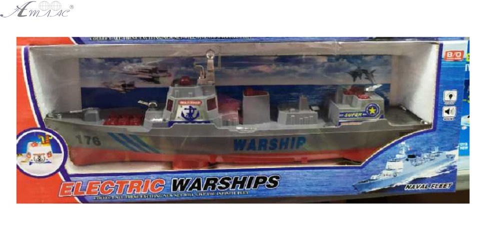 Іграшковий військовий корабель із серії Electric Warships, інтерактивна модель зі звуковими та світловими ефектами. Працює від 3 батарейок типу АА (у комплект не входять). Іграшка активно стимулює уяву, допомагає розвивати координацію рухів та дрібну моторику рук. Розмір упаковки: 42 х 15 х 8,5 см. Фактичний відтінок виробу може відрізнятися від представленого на фотографії через особливості кольоропередачі екрану.