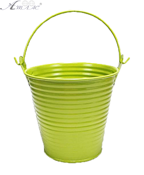 Ведерко Декоративний метал 9,5 х 9,5см Диз № 2 багато смуг Салатове 00997