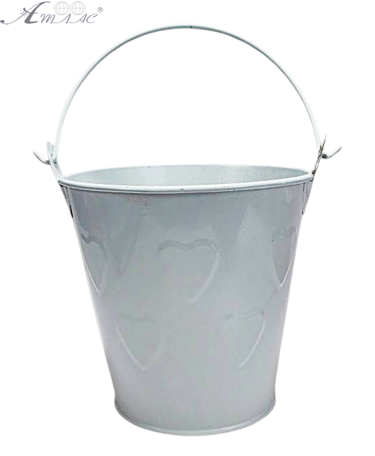 Відерко Декоративний метал 9,5 х 9,5см Диз № 7 видавлені серця Біле  12039