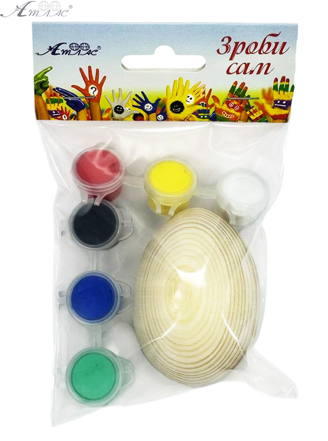 Набір Яйце дерев'яне 6 - 7 см і 6 акрилових фарб по 2 мл AS-4957