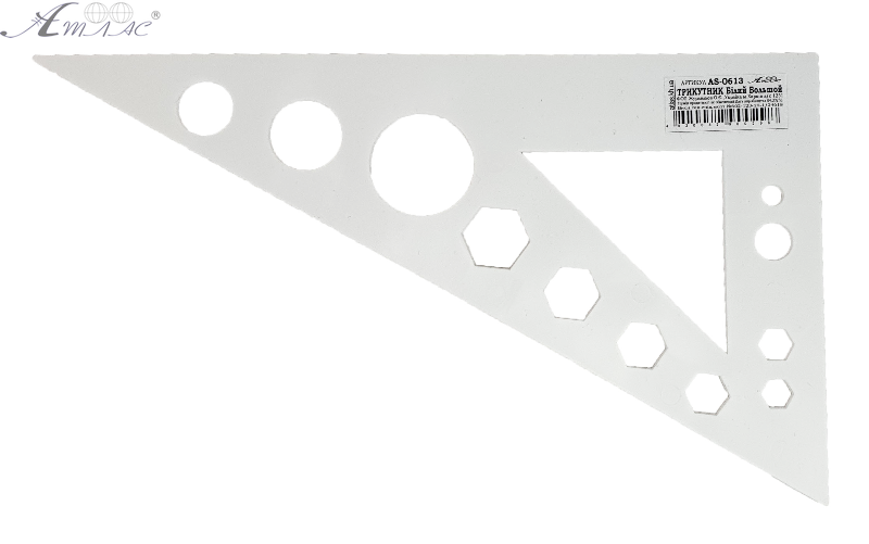Трикутник 22 см великий з транспортиром, супер-білий AS-0613
