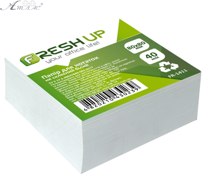 Папір для нотаток Fresh Up білий НЕ клеєний 80 х 80 мм 400 арк FR-1411