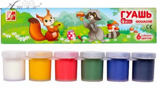 Гуаш набір Луч - Зоо Міні 6 кольорів 15мл (блок-тара) 19С 1250-08